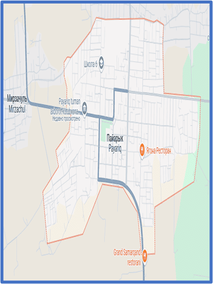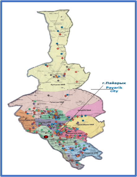 Hình 1. a) Bản đồ huyện Payaryk, vùng Samarkand, Cộng hòa Uzbekistan;