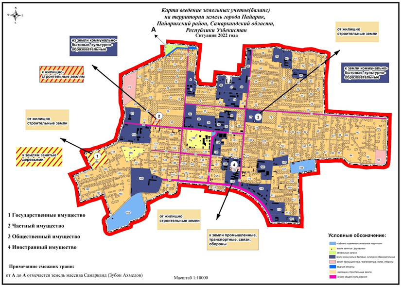 Khi sử dụng quỹ đất trên khu vực khu dân cư cho nhu cầu của nhà nước hoặc công cộng, thành phần, số lượng, chất lượng đất trong phạm vi khu khu dân cư, cũng như mức độ sử dụng thực tế các công trình phúc lợi, cung cấp tiện ích thực tế sẽ được xem xét nguồn thông tin về báo cáo đất đai chung của lãnh thổ, cũng như các tập thể, cá nhân và người nước ngoài trên lãnh thổ này. Cơ sở nộp thuế của cá nhân đối với việc sử dụng đất và yêu cầu duy trì báo cáo chính xác về tài nguyên đất đai và số dư quỹ đất chỉ trong Hệ thống GIS quốc gia nói lên tính cấp thiết của nghiên cứu này [1, 2, 4]. Đối tượng nghiên cứu là các khu vực ở làng Payaryk, huyện Payaryk, vùng Samarkand.