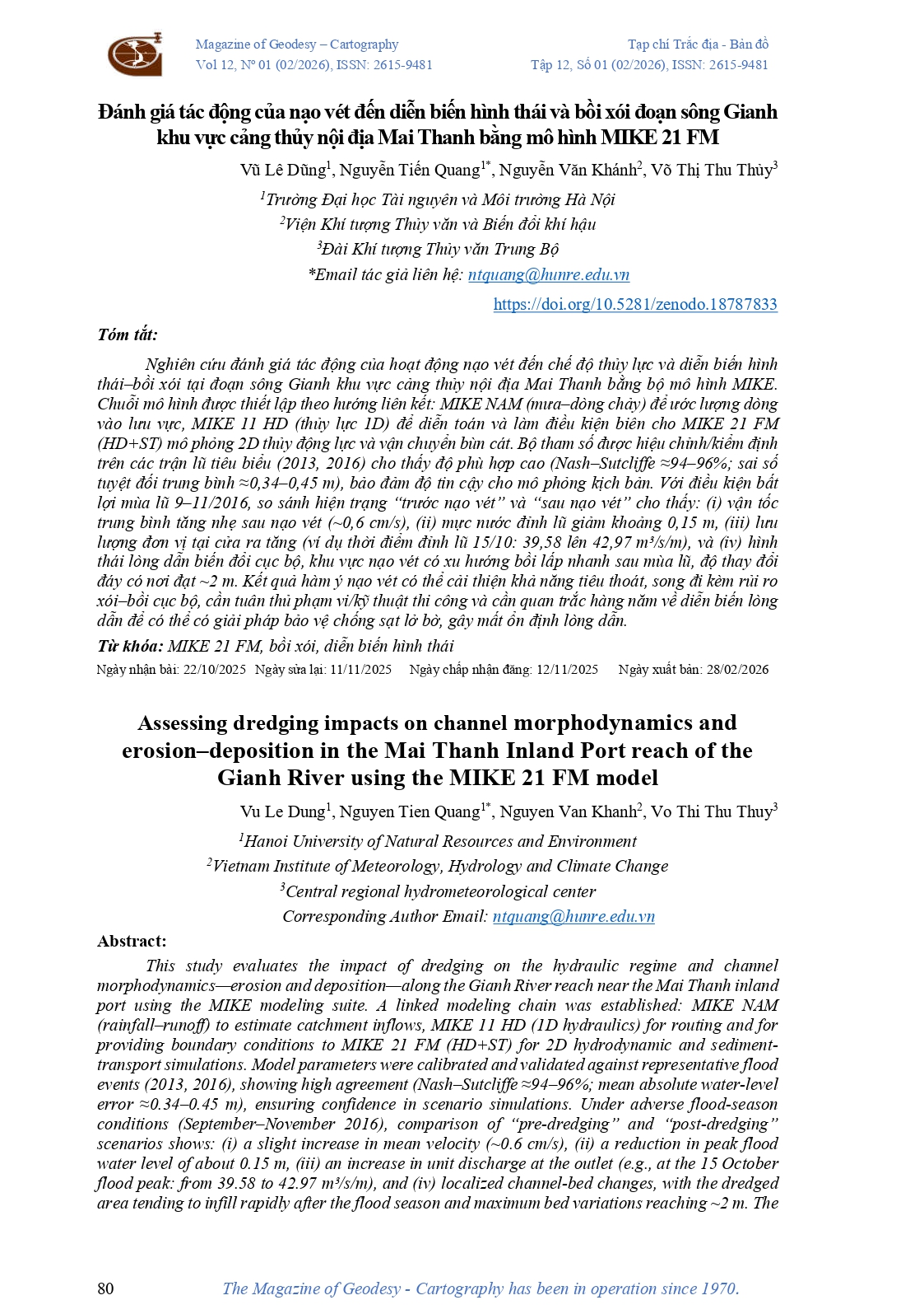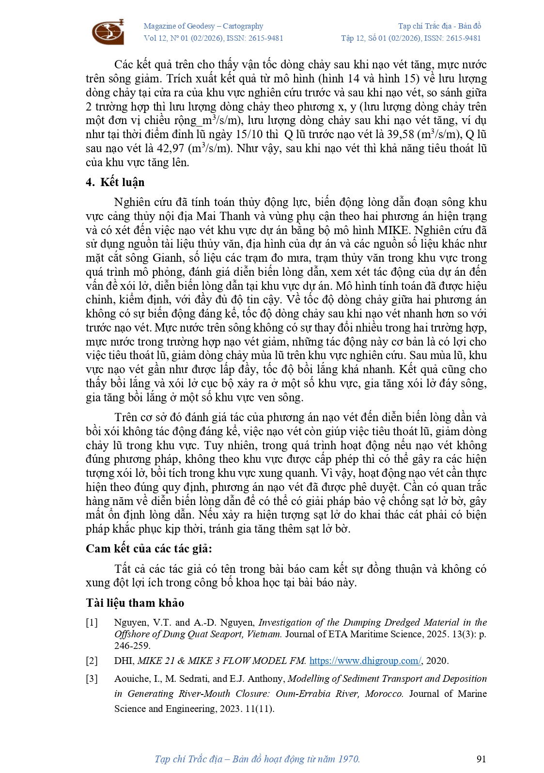 Đánh giá tác động của nạo vét đến diễn biến hình thái và bồi xói đoạn sông Gianh khu vực cảng thủy nội địa Mai Thanh bằng mô hình MIKE 21 FM