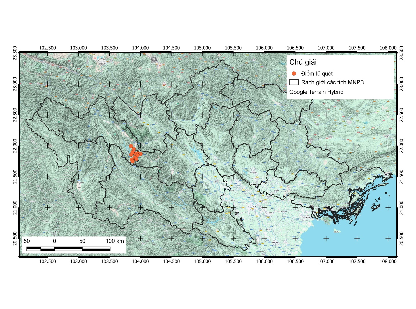 Lũ quét là một trong những loại hình thiên tai nguy hiểm, phạm vi ảnh hưởng rộng và khó dự báo cho các khu vực đồi núi, đặc biệt ở những vùng có địa hình dốc, mật độ sông suối dày đặc [1,2]. Bên cạnh đó, dữ liệu quan trắc mưa tại trạm ở miền núi phía Bắc còn thưa, chưa đủ để phản ánh tính cục bộ của các trận mưa cực đoan. Hơn nữa, các nghiên cứu hiện tại chủ yếu tập trung vào phân tích nguy cơ không gian dựa trên các yếu tố địa hình, địa chất và thủy văn [3-8], trong khi việc nghiên cứu diễn biến theo thời gian còn hạn chế do thiếu dữ liệu mưa theo giờ.