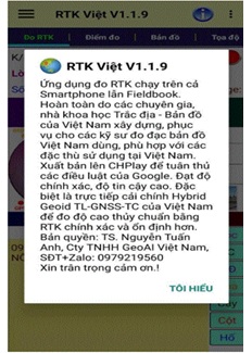 Trên cơ sở các vấn đề đã đặt ra ở trên, bài báo xin giới thiệu ứng dụng RTK-VIỆT chạy trên cả các thiết bị Smart Phone thông dụng lẫn thiết bị điều khiển Fieldbook có sẵn trên thị trường. Ứng dụng hoàn toàn do các nhà khoa học, các chuyên gia giàu kinh nghiệm thực tế trong lĩnh vực đo đạc bản đồ thiết kế và xây dựng nên, phù hợp với các đặc thù sử dụng tại Việt Nam để phục vụ cho đa ngành đa mục đích sử dụng, khi đó không chỉ bó gọn trong lĩnh vực đo đạc bản đồ nữa, mà còn tham gia, đóng góp tọa độ và vị trí có độ chính xác cao trong thời gian thực khi nhúng vào các thiết bị hiện đại khác. Khi chúng ta làm chủ được phần lõi của công nghệ bao gồm phần mềm, các luồng kết nối dữ liệu và các thuật toán tính toán xử lý, thì chúng ta hoàn toàn có thể tự sản xuất hoặc nhập linh kiện về để chế tạo nốt phần cứng và các thiết bị liên quan để hoàn thiện công nghệ này.