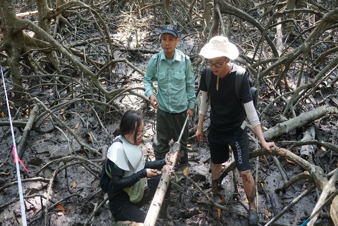 Khảo sát, lấy mẫu thực địa tại rừng ngập mặn Cần Giờ (Ảnh do Ban tổ chức cung cấp)