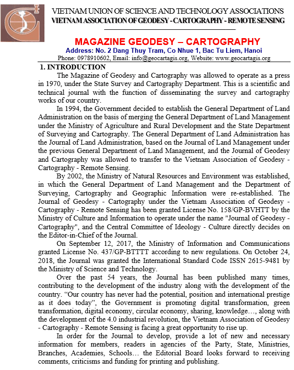 {"id":168900,"name":"MAGAZINE GEODESY – CARTOGRAPHY","desc":"<p align=\"center\" style=\"margin-top:0cm; margin-right:.55pt; margin-bottom:0cm; margin-left:0cm; text-align:center; margin:0cm 0cm 3.75pt\"><img height=\"133\" src=\"\/datafiles\/46325\/upload\/images\/image-20240924222019-1.jpeg\" style=\"float: left;\" width=\"207\" \/><span style=\"font-size:12pt\"><span style=\"font-family:"Times New Roman",serif\"> <span style=\"font-size:16.0pt\"><span style=\"color:black\"><span style=\"letter-spacing:-1.0pt\">VIETNAM UNION OF SCIENCE AND TECHNOLOGY ASSOCIATIONS<\/span><\/span><\/span><\/span><\/span><\/p>\n\n<p align=\"center\" style=\"margin-top:0cm; margin-right:.55pt; margin-bottom:0cm; margin-left:0cm; text-align:center; margin:0cm 0cm 3.75pt\"><span style=\"font-size:12pt\"><span style=\"tab-stops:center 226.55pt left 265.0pt\"><span style=\"font-family:"Times New Roman",serif\"><v:line from=\"104.85pt,26.3pt\" id=\"Straight_x0020_Connector_x0020_2\" o:gfxdata=\"UEsDBBQABgAIAAAAIQC75UiUBQEAAB4CAAATAAAAW0NvbnRlbnRfVHlwZXNdLnhtbKSRvU7DMBSF\ndyTewfKKEqcMCKEmHfgZgaE8wMW+SSwc27JvS\/v23KTJgkoXFsu+P+c7Ol5vDoMTe0zZBl\/LVVlJ\ngV4HY31Xy4\/tS3EvRSbwBlzwWMsjZrlprq\/W22PELHjb51r2RPFBqax7HCCXIaLnThvSAMTP1KkI\n+gs6VLdVdad08ISeCho1ZLN+whZ2jsTzgcsnJwldluLxNDiyagkxOquB2Knae\/OLUsyEkjenmdzb\nmG\/YhlRnCWPnb8C898bRJGtQvEOiVxjYhtLOxs8AySiT4JuDystlVV4WPeM6tK3VaILeDZxIOSsu\nti\/jidNGNZ3\/J08yC1dNv9v8AAAA\/\/8DAFBLAwQUAAYACAAAACEArTA\/8cEAAAAyAQAACwAAAF9y\nZWxzLy5yZWxzhI\/NCsIwEITvgu8Q9m7TehCRpr2I4FX0AdZk2wbbJGTj39ubi6AgeJtl2G9m6vYx\njeJGka13CqqiBEFOe2Ndr+B03C3WIDihMzh6RwqexNA281l9oBFTfuLBBhaZ4ljBkFLYSMl6oAm5\n8IFcdjofJ0z5jL0MqC\/Yk1yW5UrGTwY0X0yxNwri3lQgjs+Qk\/+zfddZTVuvrxO59CNCmoj3vCwj\nMfaUFOjRhrPHaN4Wv0VV5OYgm1p+LW1eAAAA\/\/8DAFBLAwQUAAYACAAAACEANXjTA8gBAABYBAAA\nHwAAAGNsaXBib2FyZC9kcmF3aW5ncy9kcmF3aW5nMS54bWykVE1vnDAQvVfKf7B8b\/jYJopQ2Bw2\nTS5RGnXbHzAyBqyYMbIdyv77joEFhFaK1F4sz\/i9N37jgfuHvtGsk9YpgzlPrmPOJApTKKxy\/vvX\n09c7zpwHLEAblDk\/Sccf9ldf7iGrLLS1EowU0GWQ89r7NosiJ2rZgLs2rUQ6K41twFNoq6iw8IeU\nGx2lcXwbNaCQ7xepR\/DAPqz6ByltxLssDoAdOJLUIltnpjtq8f\/KkGH3bNtj+2bDzcVr92aZKnJO\nnUNoqEU8mg4mGIXRhlUtAn1pm4A3Zcn6QeUU1kFD9p6JMSmWrKh\/XMCK+vsFNBUeC9BmVVT0eGxD\nVewOYbv1kp69HL0FVdWeHQyiFN5Yls7+JurZ30rJTYobc+ntXbzb3XBGZhKagORmY3RHyW8xdXK2\nOxuArLXOP0vTsLDJuVYoh+GB7sX58RJnSLCmMazOaFU8Ka2HIEymPGjLOtA5930SvFCJFYqiwAzJ\nyYTzJy1HxZ+ypLemF0mHysOkL3oghER\/1tRI6EArqfpMjD8nTvhAlWVJTZ\/JyefkmTFUNriQG4XG\nXhJY2lCO+NH96Jr6MA1LtPmmBtT0Dwgf7jre\/wUAAP\/\/AwBQSwMEFAAGAAgAAAAhAODMYzwIBwAA\nDSAAABoAAABjbGlwYm9hcmQvdGhlbWUvdGhlbWUxLnhtbOxZS28bNxC+F+h\/WOy9sWTrERuRA+vh\nOIllG5GSIkdql9plxH2ApOzoViSnXgoUSIseGqC3HoqiARqgQS\/9MQYctOmP6JD7EClR8QM+BIUd\nINid\/WY4nBnOjIZ37j6PqHOMGSdJ3HKrtyqug2Mv8UkctNzHw90vbrsOFyj2EU1i3HJnmLt3tz\/\/\n7A7a8ihJRwli\/jDEEXZAUMy3UMsNhUi31ta4B2TEbyUpjuHbOGEREvDKgjWfoRNYIKJr65VKYy1C\nJHa3QaKQgnoU\/osFlwSPsoEUg50YRbD64XhMPKyw\/qQqEXzGO5Q5x4i2XJDpJydD\/Fy4DkVcwIeW\nW1F\/7tr2nTW0lTNRsYJX49tVfzlfzuBP1tWaLBiVi9Zq9Vpjp5SvAFQs43rNXqPXKOUpAPI82Gmm\niymzud6p5VgNlD1aZHeb3Y2qgdfkbyzpvFOX\/wy8AmXya0v43d0OWNHAK1CGry\/h6+3NdteUr0AZ\nvrGEb1Z2urWmIV+BQkriyRK6Um9sdIrdlpBxQves8M16bbe5ngufoyAayuiSS4yTWKyKtQg9S9gu\nACSQIkFiR8xSPEYexGQHUTJixNknQSjkMmgLI+17RvL4Ekmu6HCPkVS03Acpil0Ncvbu3emLt6cv\n\/jh9+fL0xW+6dINvD8WBzvfh52\/\/ff2V88\/vP3149V229CKe6\/j3v379\/s+\/PiYeDtN8s2ffv3n\/\n9s3ZD9\/8\/csri\/QdhkY6fEgizJ0DfOI8SiLYoLKOqQ8esctxDENEdI6dOOAoRnIVi\/yeCA30wQxR\nZMG1sWnHJwySiQ14b\/rMUHgQsqkgFokPw8gA9pOEthNmtcJDuZZm5uE0DuyLs6mOe4TQsW3tDooN\nL\/emKWRRYhPZCbGh5hFFsUABjrFw5LdkgrFld08JMezaJx5LeDIWzlPitBGxmmRIRkY0zZn2SAR+\nmdkUBH8btuk\/cdoJte26i49NJJwNRC3KDzE1zHgPTQWKbCKHKKK6wfeRCG1KDmbM03E9LsDTAaaJ\n0\/Mx5zaeQwb71Zz+EBKJ3e19OotMJBNkYpO5j5JER3aTSSdEUWrDDkgc6tj7fAIhipyjRNjg\/cQ8\nIfId\/IDile5+QrDh7vOzwWPIobpK8wCRX6bM4st7ODHidzCjY4RtqWaHRUaK3WHEGh3taWCE9j7G\nFJ0gH2Pn8X2LBu0kNWw+V\/pBCFllD9sC6wEyY1W+x5hjR7Uvy3lyn3AjZAc4SFbo058tJJ4ZiiPE\nVkk+AK\/rNu9BMYtsAXBIvYkOPCDQ0UG8WI1yyEGGFtwrpR6FyChg8p3b43XGDP9d5IzBuXxmqHGB\ncwk8+NI8kNh1no\/aZoioscA8YIYI+ghbugUWw\/1zFllcFdvUyjc2D+3cDdD\/GG1NROJze5ws+K+n\nu4Ee4uzH15bjdD0djV2wkY4u2cusShd7Cx3MKtxi39JJmE8+\/bali6bxEYZKsZyTbrqWm67F\/d93\nLavO802vsqqjuOlVXOghbnqVfEByPb3KvD2BzkWOELJhjRrdRCsnN2NC6UDMKN7nanjD4ReLvwtE\nyacmlLic5KUhPMoyBwsYuIAhxeOwRHxJRDgIUQqDn6orhQQ8Fx1wJ004DBwV2Spb4uk06id+NrCs\nVuVwMqusHIk5vVIv6TBsEhm60ZwP4UrxSttADUsLBSTvZZTQFjOV2LAo0SyI0khqNAtGsyihdnYt\nWmxatLgtxReuWtICVCu9Aj+pHfgh3nLrNWABJpi4QfvtSz9lri68q5x5nZ5eZUwjAiowAc8jYO7p\nTanryu3J3WWhdgFPG0po4WYqoSyjGjwewg\/dPDol9SJqXNbXm3OXGupJU+S20NRo3v6YFlf1NfAt\n5gYa65mCxs5Jy21s1CFkPJS23DEMfuExSiF2uPxVhWgAVyaeYNmBv0pmSRkXXcTDzOAq6WTZICIC\nM4eSqOXK7ZduoLHKIUq36jokhE9WuU1IK5+acuB008l4PMae0N2uUaSls1fI8FmusH5V7FcHS85k\nCu4ehP6JM6JT9ghBiNWbVWlAn3C4Hahm1vQJXGiViWwefwuFKU+7+o2SiqGMjmgaoryi6Mk8g6tU\nXqqj3kobaG\/5nsGgmknyQjgKZIHVjWpU07JqZDqsrLrnM0nLaUlzXjONrCKrpj2LGSsUZWDBllcr\n8ppWhYmhXOoVPkvdiyl3s8h1C31CWSXA4KX9LFX3AgVBU22+mKGa1Hg5DcucnVPN2lFs8BzVLlIk\ntKzfKMQu2K2sEdblgHilyg98i1ELpHHRVypL2y6n+yh1RkG15cIFMYz\/nsMTXDG7QFuXtHVJgye4\nN4ZykV32ttz8oaDA94xSYjYKykaBqRWUWkGpF5R6QWkUlIbrqFtRuImXF6KuU1x6Qg3LL0nz3sK8\nwd\/+DwAA\/\/8DAFBLAwQUAAYACAAAACEAnGZGQbsAAAAkAQAAKgAAAGNsaXBib2FyZC9kcmF3aW5n\ncy9fcmVscy9kcmF3aW5nMS54bWwucmVsc4SPzQrCMBCE74LvEPZu0noQkSa9iNCr1AcIyTYtNj8k\nUezbG+hFQfCyMLPsN7NN+7IzeWJMk3ccaloBQae8npzhcOsvuyOQlKXTcvYOOSyYoBXbTXPFWeZy\nlMYpJFIoLnEYcw4nxpIa0cpEfUBXNoOPVuYio2FBqrs0yPZVdWDxkwHii0k6zSF2ugbSL6Ek\/2f7\nYZgUnr16WHT5RwTLpRcWoIwGMwdKV2edNS1dgYmGff0m3gAAAP\/\/AwBQSwECLQAUAAYACAAAACEA\nu+VIlAUBAAAeAgAAEwAAAAAAAAAAAAAAAAAAAAAAW0NvbnRlbnRfVHlwZXNdLnhtbFBLAQItABQA\nBgAIAAAAIQCtMD\/xwQAAADIBAAALAAAAAAAAAAAAAAAAADYBAABfcmVscy8ucmVsc1BLAQItABQA\nBgAIAAAAIQA1eNMDyAEAAFgEAAAfAAAAAAAAAAAAAAAAACACAABjbGlwYm9hcmQvZHJhd2luZ3Mv\nZHJhd2luZzEueG1sUEsBAi0AFAAGAAgAAAAhAODMYzwIBwAADSAAABoAAAAAAAAAAAAAAAAAJQQA\nAGNsaXBib2FyZC90aGVtZS90aGVtZTEueG1sUEsBAi0AFAAGAAgAAAAhAJxmRkG7AAAAJAEAACoA\nAAAAAAAAAAAAAAAAZQsAAGNsaXBib2FyZC9kcmF3aW5ncy9fcmVscy9kcmF3aW5nMS54bWwucmVs\nc1BLBQYAAAAABQAFAGcBAABoDAAAAAA=\n\" strokecolor=\"black [3213]\" strokeweight=\"1pt\" style=\"positi