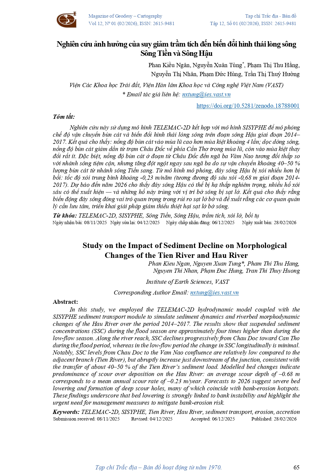 {"id":736502,"name":"Nghiên cứu ảnh hưởng của suy giảm trầm tích đến biến đổi hình thái lòng sông Sông Tiền và Sông Hậu","desc":"<p style=\"text-align:right;\"><span style=\"color:#4472C4;\">Tập 12, Số 01 (02\/2026), ISSN: 2615-9481 <\/span><\/p><p style=\"text-align:right;\">Phan Kiều Ngân, Nguyễn Xuân Tùng, Phạm Thị Thu Hằng, Nguyễn Thị Nhân, Phạm Đức Hùng, Trần Thị Thuý Hường<\/p>","content":"<figure class=\"image\"><img src=\"\/datafiles\/46325\/upload\/images\/2026-03\/So 1_2026 V12 Điện tử_page-0065.jpg\"><\/figure><figure class=\"image\"><img src=\"\/datafiles\/46325\/upload\/images\/2026-03\/So 1_2026 V12 Điện tử_page-0066.jpg\"><\/figure><figure class=\"image\"><img src=\"\/datafiles\/46325\/upload\/images\/2026-03\/So 1_2026 V12 Điện tử_page-0067.jpg\"><\/figure><figure class=\"image\"><img src=\"\/datafiles\/46325\/upload\/images\/2026-03\/So 1_2026 V12 Điện tử_page-0068.jpg\"><\/figure><figure class=\"image\"><img src=\"\/datafiles\/46325\/upload\/images\/2026-03\/So 1_2026 V12 Điện tử_page-0069.jpg\"><\/figure><figure class=\"image\"><img src=\"\/datafiles\/46325\/upload\/images\/2026-03\/So 1_2026 V12 Điện tử_page-0070.jpg\"><\/figure><figure class=\"image\"><img src=\"\/datafiles\/46325\/upload\/images\/2026-03\/So 1_2026 V12 Điện tử_page-0071.jpg\"><\/figure><figure class=\"image\"><img src=\"\/datafiles\/46325\/upload\/images\/2026-03\/So 1_2026 V12 Điện tử_page-0072.jpg\"><\/figure><figure class=\"image\"><img src=\"\/datafiles\/46325\/upload\/images\/2026-03\/So 1_2026 V12 Điện tử_page-0073.jpg\"><\/figure><figure class=\"image\"><img src=\"\/datafiles\/46325\/upload\/images\/2026-03\/So 1_2026 V12 Điện tử_page-0074.jpg\"><\/figure><figure class=\"image\"><img src=\"\/datafiles\/46325\/upload\/images\/2026-03\/So 1_2026 V12 Điện tử_page-0075.jpg\"><\/figure><figure class=\"image\"><img src=\"\/datafiles\/46325\/upload\/images\/2026-03\/So 1_2026 V12 Điện tử_page-0076.jpg\"><\/figure><figure class=\"image\"><img src=\"\/datafiles\/46325\/upload\/images\/2026-03\/So 1_2026 V12 Điện tử_page-0077.jpg\"><\/figure><figure class=\"image\"><img src=\"\/datafiles\/46325\/upload\/images\/2026-03\/So 1_2026 V12 Điện tử_page-0078.jpg\"><\/figure><figure class=\"image\"><img src=\"\/datafiles\/46325\/upload\/images\/2026-03\/So 1_2026 V12 Điện tử_page-0079.jpg\"><\/figure>","image_url":"https:\/\/www.geocartagis.org\/datafiles\/46325\/upload\/images\/So1_2026\/Picture5.jpg?t=1773068434","image_thumb_url":"https:\/\/www.geocartagis.org\/datafiles\/46325\/upload\/thumb_images\/So1_2026\/Picture5.jpg?t=1773936511","tags":["Nghiên cứu ảnh hưởng của suy giảm trầm tích đến biến đổi hình thái lòng sông Sông Tiền và Sông Hậu"],"count_view":165,"seo_name":"nghien-cuu-anh-huong-cua-suy-giam-tram-tich-den-bien-doi-hinh-thai-long-song-song-tien-va-song-hau","date_update":1773069660,"date_created_format":1773069973,"meta_title":"Nghiên cứu ảnh hưởng của suy giảm trầm tích đến biến đổi hình thái","meta_desc":"Nghiên cứu này sử dụng mô hình TELEMAC 2D kết hợp với mô hình SISYPHE để mô phỏng chế độ vận chuyển bùn cát và biến đổi hình thái lòng sông trên đoạn sông Hậu giai đoạn 2014–2017. Kết quả cho thấy: nồng độ bùn cát vào mùa lũ cao hơn mùa kiệt khoảng 4 lần;","meta_keyword":"Nghiên cứu ảnh hưởng của suy giảm trầm tích đến biến đổi hình thái lòng sông Sông Tiền và Sông Hậu","qr_code":"https:\/\/www.geocartagis.org\/nghien-cuu-anh-huong-cua-suy-giam-tram-tich-den-bien-doi-hinh-thai-long-song-song-tien-va-song-hau","title_page":"Số báo hiện thời","relate_object_id":736502,"company_logo":"https:\/\/www.geocartagis.org\/datafiles\/46325\/upload\/images\/B%C3%ACa%20TC\/logo_Header.PNG","company_name":"Tạp chí Trắc địa - Bản đồ","company_email":"geocartagis@gmail.com","company_phone":"0913345919","company_address":"Số 2 Đặng Thùy Trâm, phường Nghĩa Đô, thành phố Hà Nội","company_fax":"","date_now":1776520686,"company_tags":["Trắc địa - Bản đồ","Thông tin Địa lý","Quản lý đất đai","Bất động sản\nKhoa học trái đất","Môi trường","Địa chất","Biến đổi khí hậu"],"search_keyword":null,"facebook_comment":"https:\/\/www.geocartagis.org\/nghien-cuu-anh-huong-cua-suy-giam-tram-tich-den-bien-doi-hinh-thai-long-song-song-tien-va-song-hau","breadscrumb":[{"url":"https:\/\/www.geocartagis.org","name":"Trang chủ","icon":"","active":false},{"url":"https:\/\/www.geocartagis.org\/so-bao-hien-thoi-1709396679","name":"Số báo hiện thời","icon":"","active":false},{"url":"https:\/\/www.geocartagis.org\/nghien-cuu-ung-dung","name":"Nghiên cứu, ứng dụng","icon":"","active":true}],"list_products_tmp":[],"list_section":[{"id":436746,"name":"SECTION-99232","seo_name":"#w30s-section-436746","url":"#w30s-section-436746"},{"id":436749,"name":"SECTION-99240","seo_name":"#w30s-section-436749","url":"#w30s-section-436749"},{"id":436750,"name":"SECTION-99475","seo_name":"#w30s-section-436750","url":"#w30s-section-436750"},{"id":436768,"name":"SECTION-99485","seo_name":"#w30s-section-436768","url":"#w30s-section-436768"},{"id":436769,"name":"SECTION-99486","seo_name":"#w30s-section-436769","url":"#w30s-section-436769"},{"id":436747,"name":"SECTION-99234","seo_name":"#w30s-section-436747","url":"#w30s-section-436747"}],"type_page":7,"id_page":293667,"widget_11234455":{"content_data":{"content":" Thứ 2 - thứ 7"}},"widget_11234453":{"content_data":[{"id":48682,"title":"Viet Nam","code":"vn","is_expires":false,"is_active":1},{"id":48683,"title":"American","code":"us","is_expires":false,"is_active":0}]},"widget_10923495":{"content_data":{"content":"Lượt xem"}},"widget_10923499":{"content_data":{"content":"Tags: "}},"