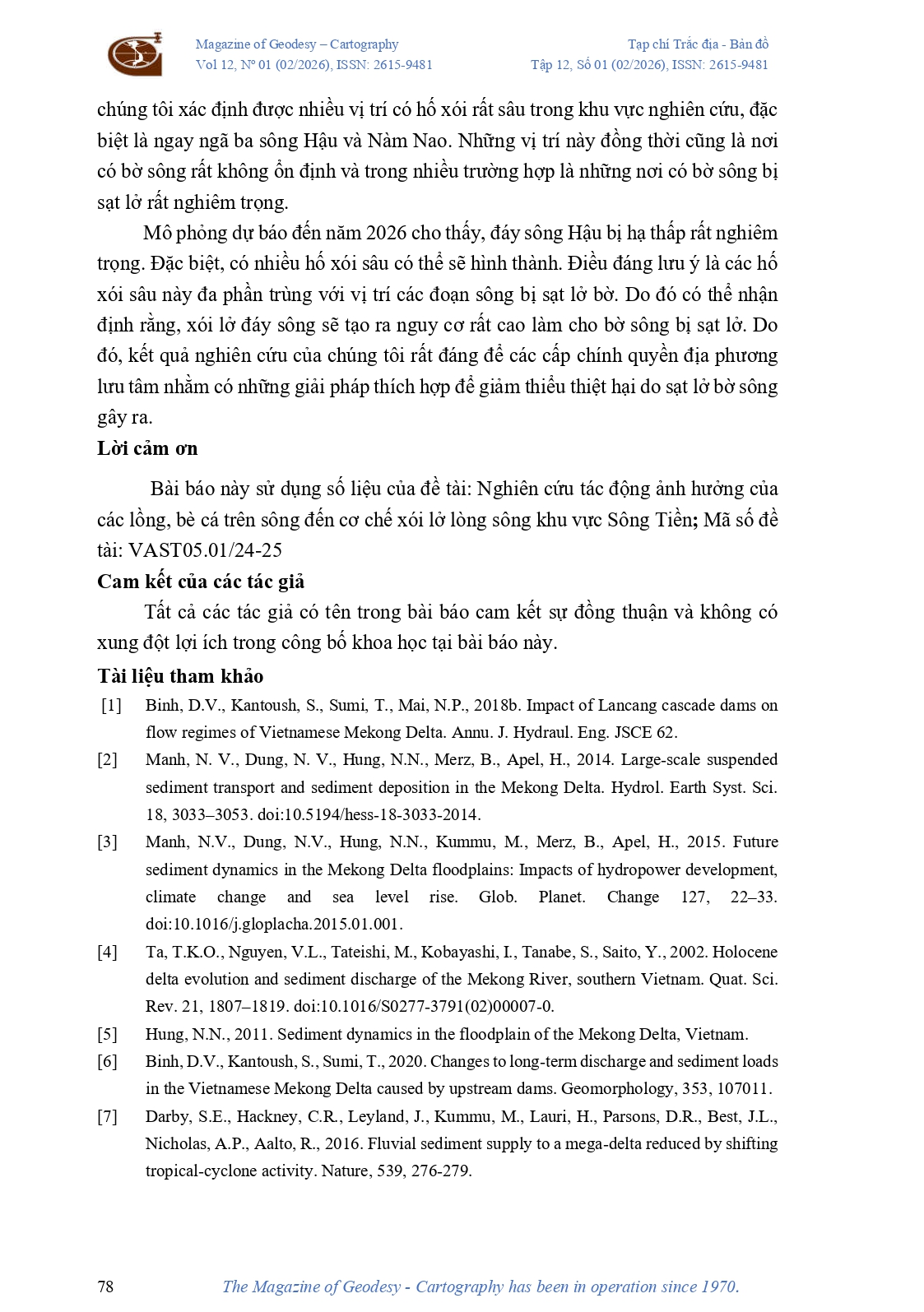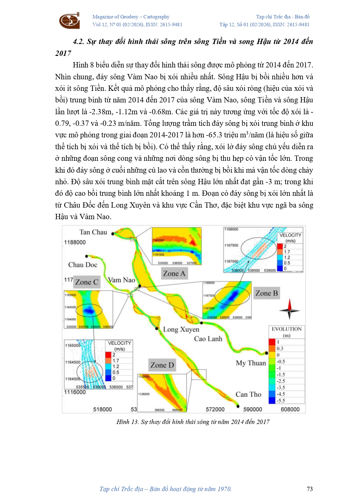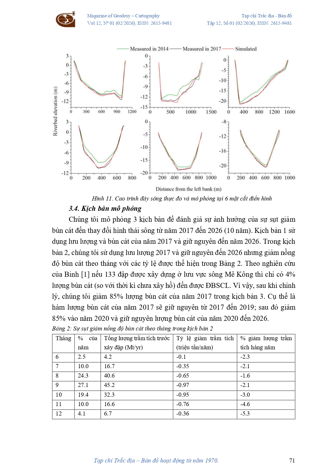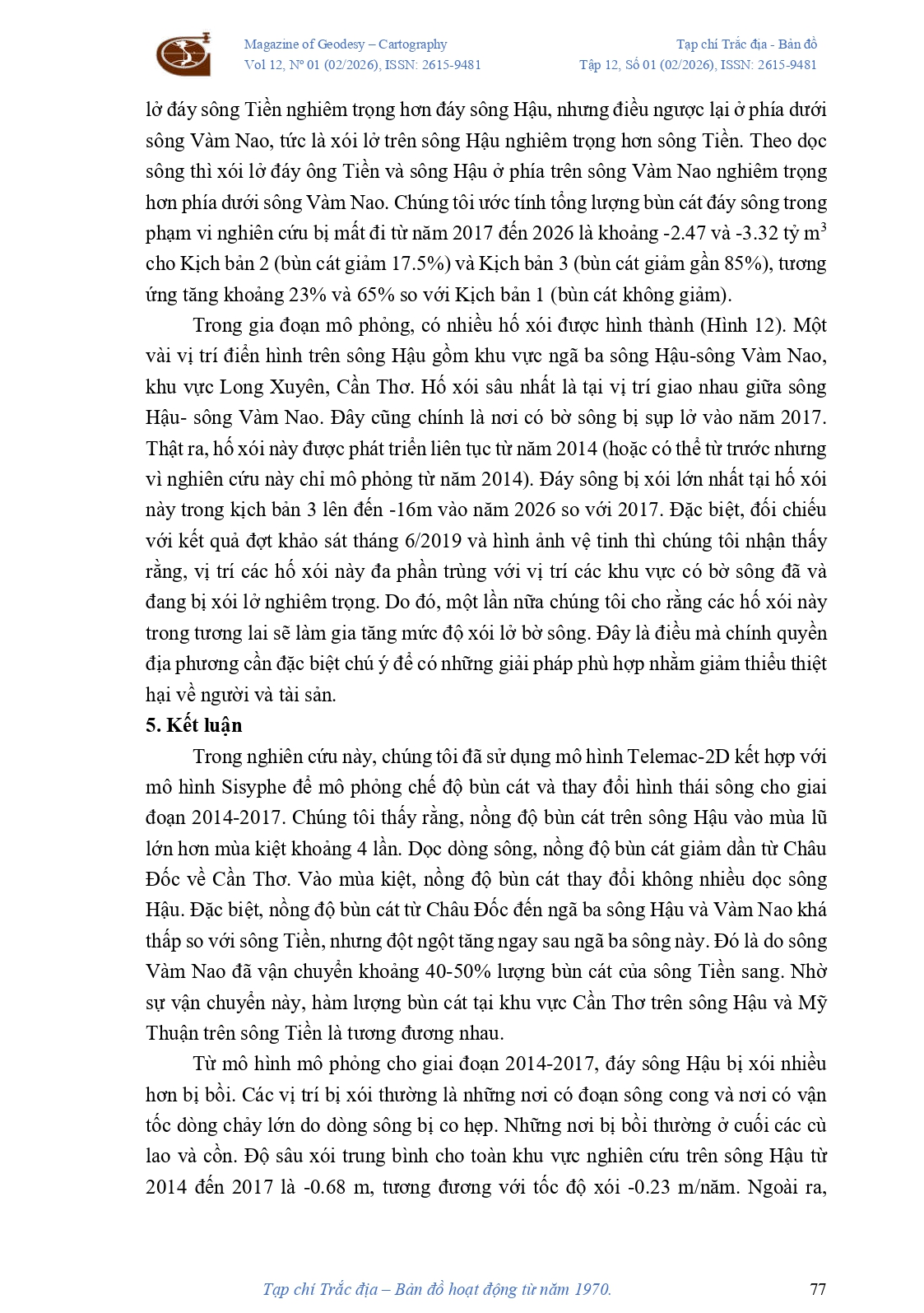 Nghiên cứu ảnh hưởng của suy giảm trầm tích đến biến đổi hình thái lòng sông Sông Tiền và Sông Hậu