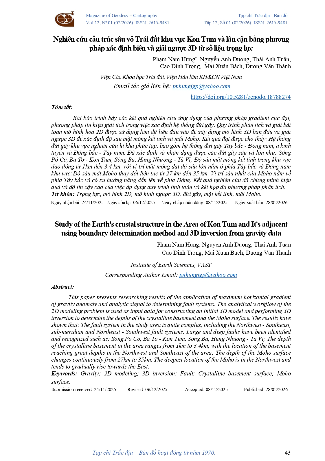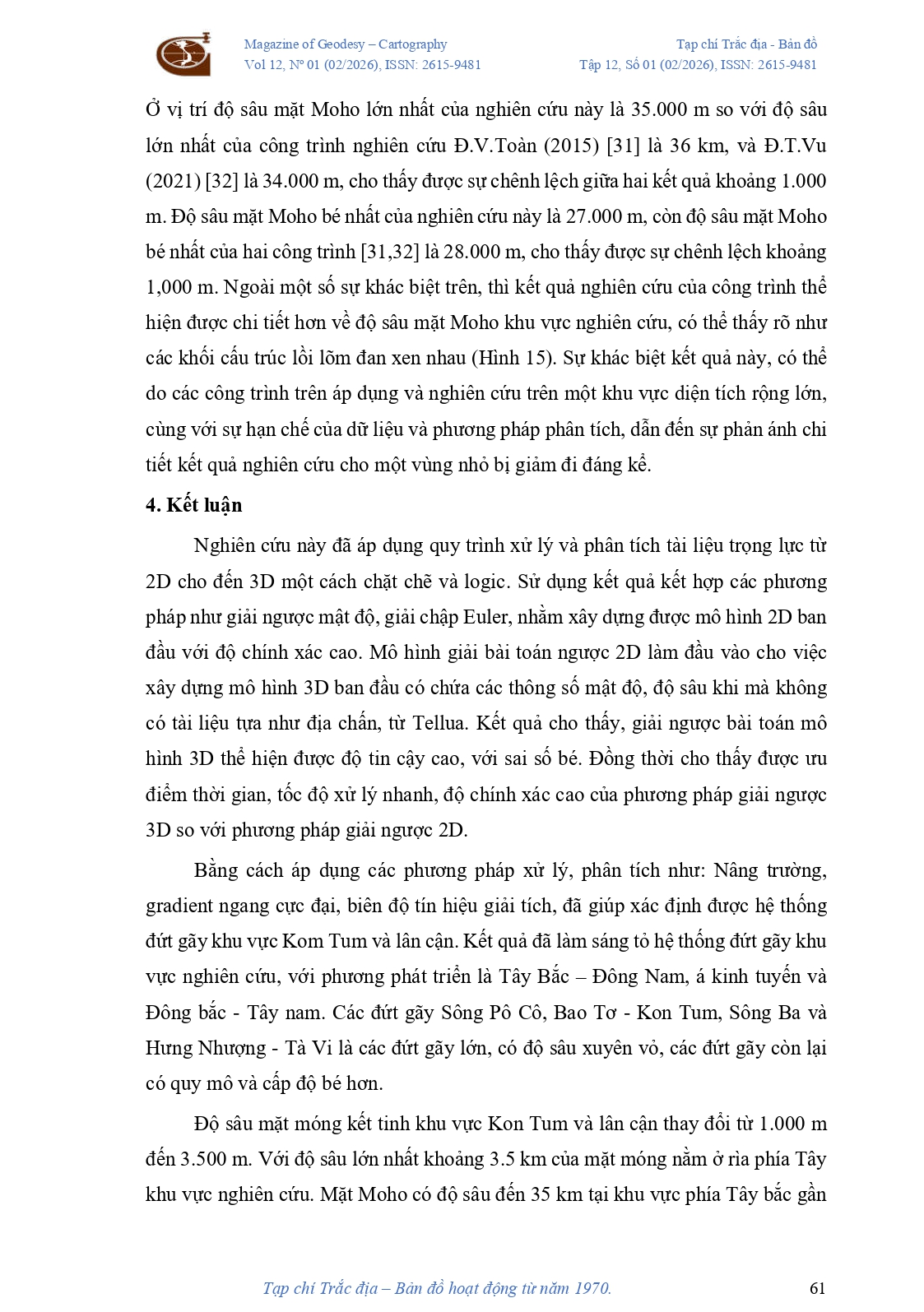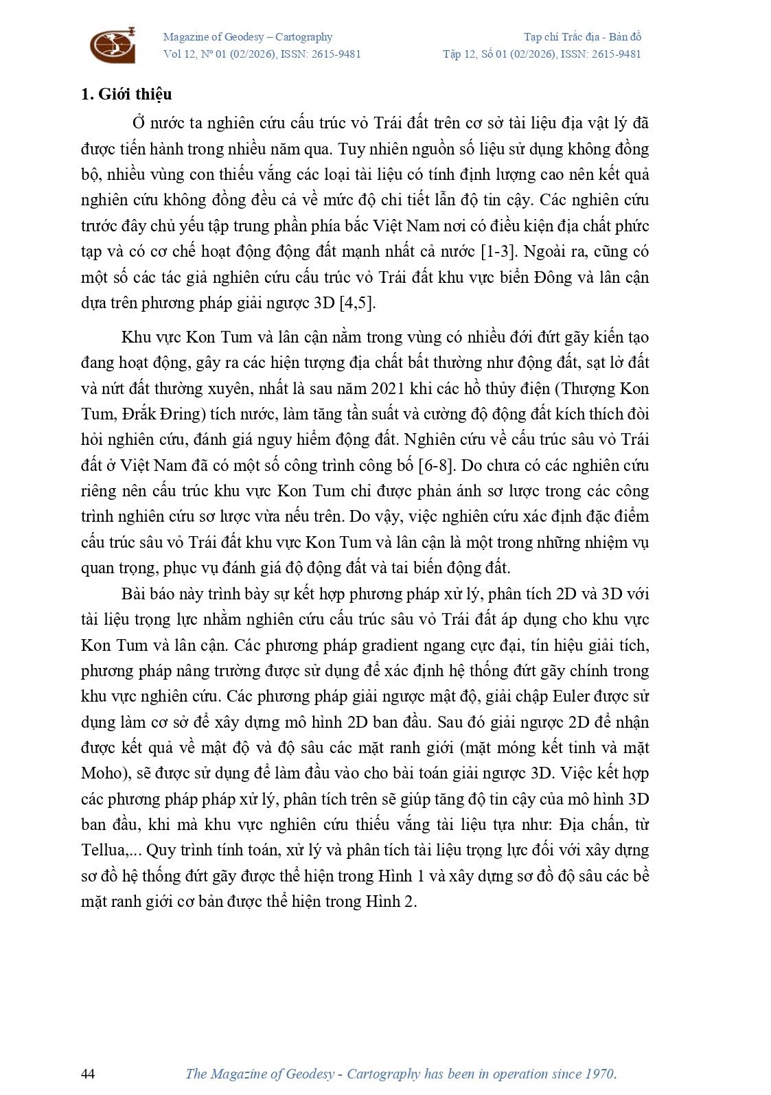 Nghiên cứu cấu trúc sâu vỏ Trái đất khu vực Kon Tum và lân cận bằng phương pháp xác định biên và giải ngược 3D từ số liệu trọng lực