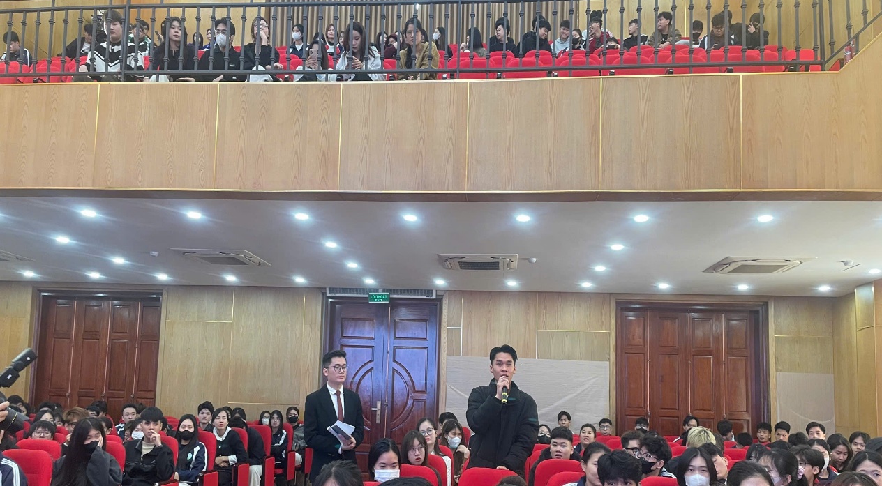 Không khí cởi mở, thân thiện giữa sinh viên và các chuyên gia đã tạo nên một diễn đàn đối thoại hai chiều hiệu quả, giúp sinh viên tiếp cận thông tin ngành nghề một cách trực quan và thực tế hơn.