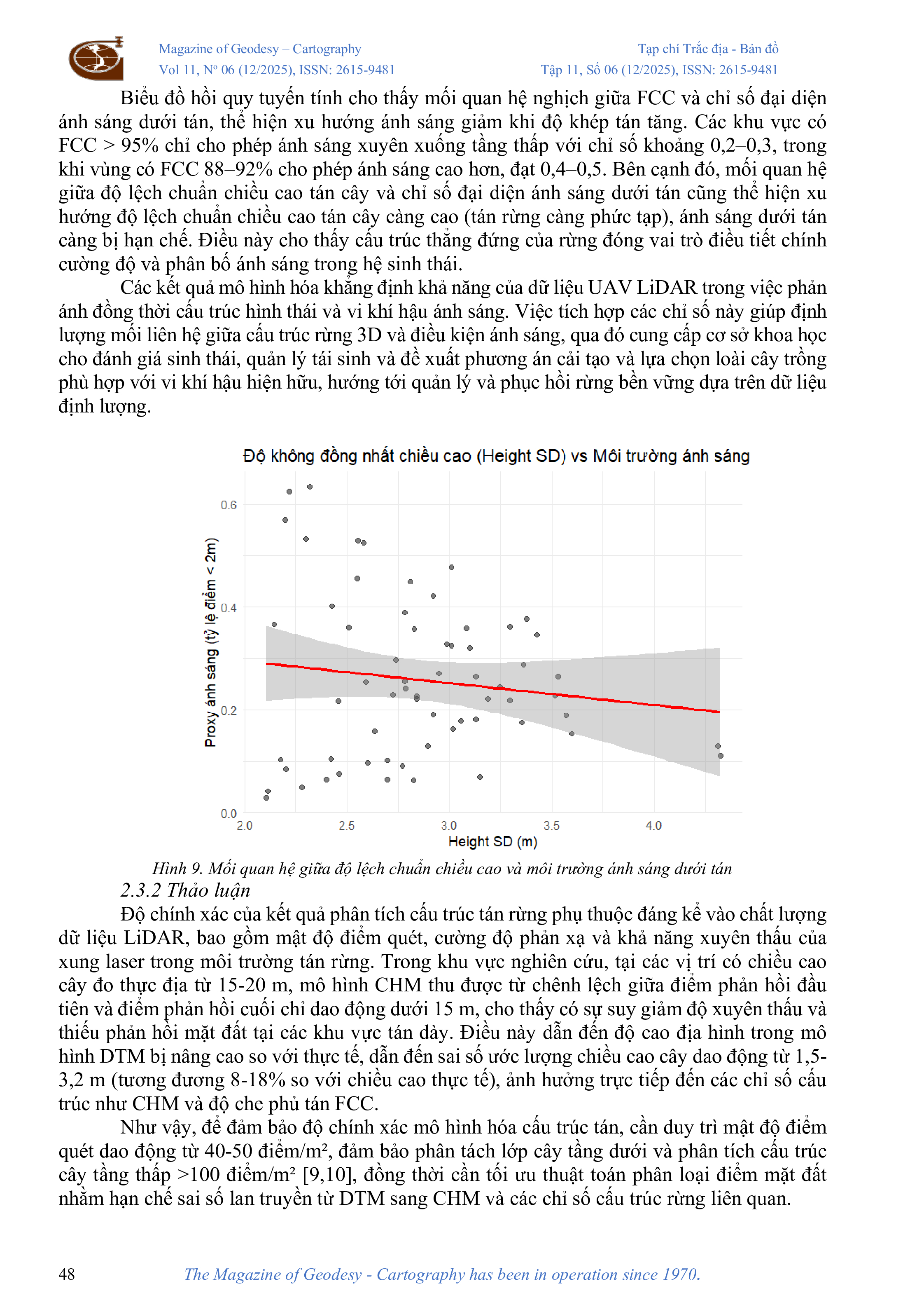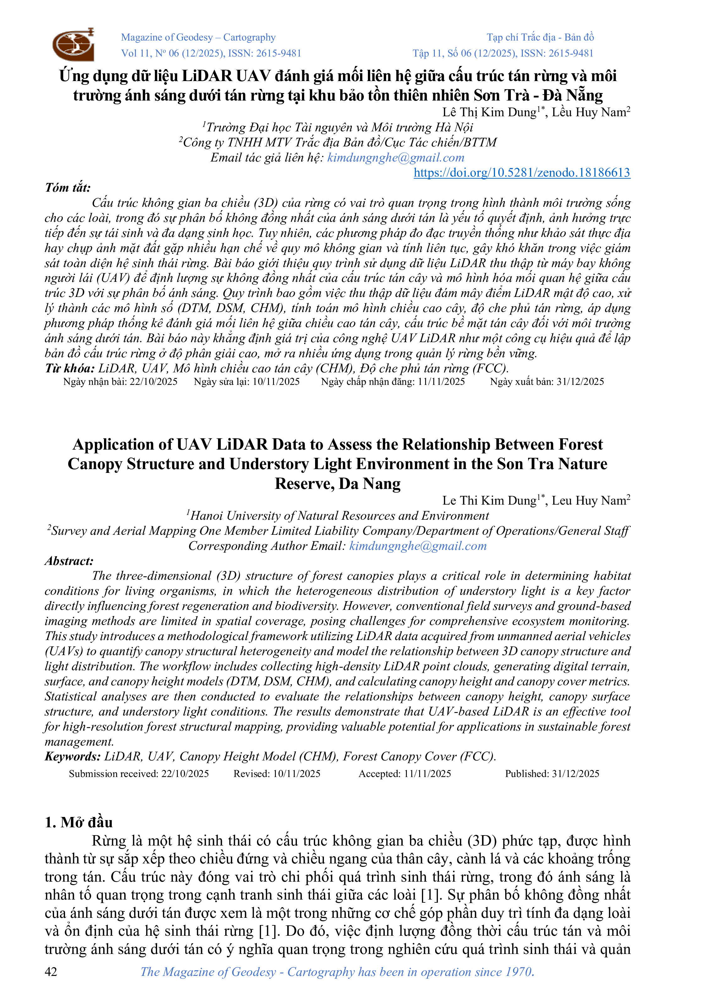 Ứng dụng dữ liệu LiDAR UAV đánh giá mối liên hệ giữa cấu trúc tán rừng và môi trường ánh sáng dưới tán rừng tại khu bảo tồn thiên nhiên Sơn Trà - Đà Nẵng