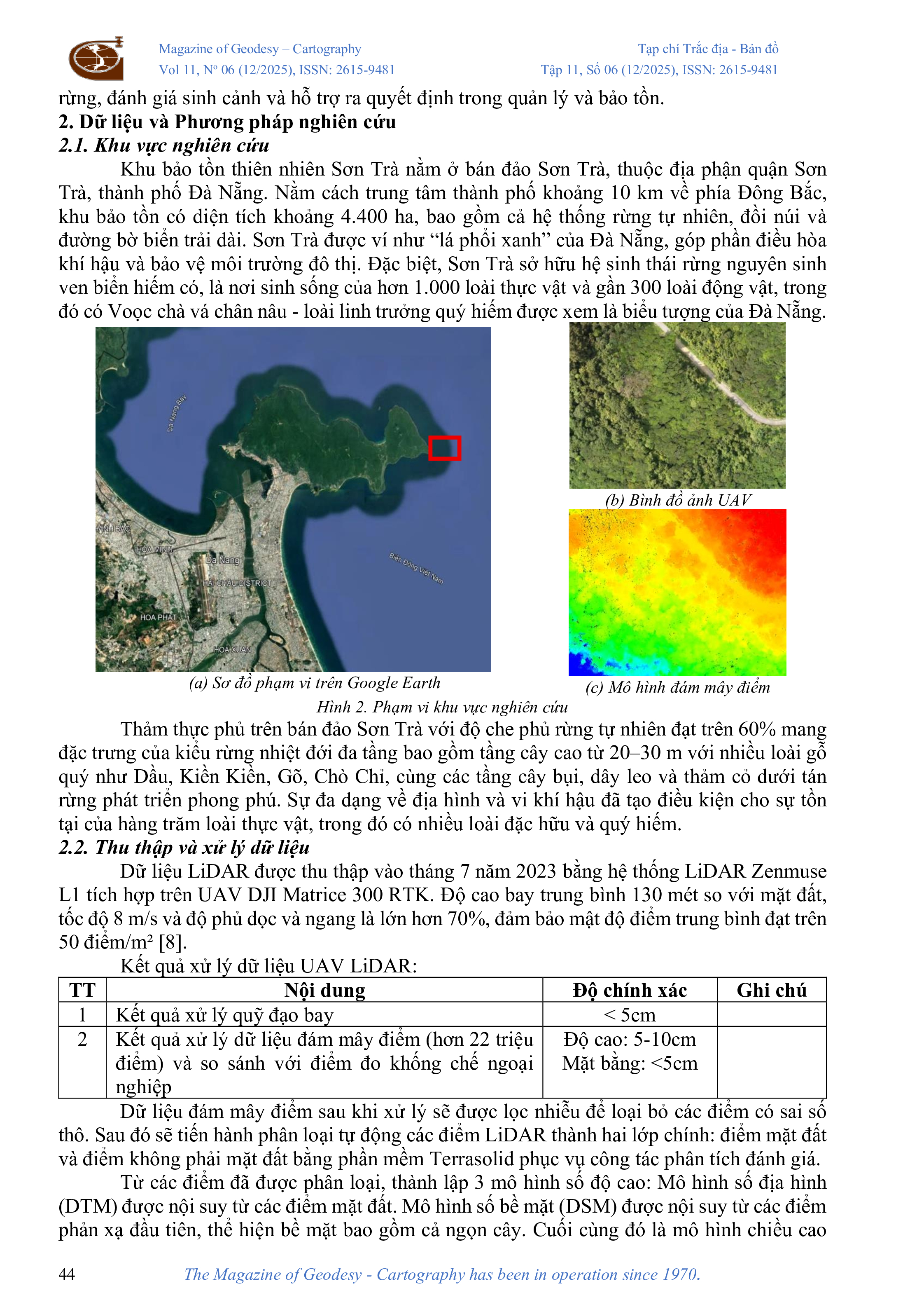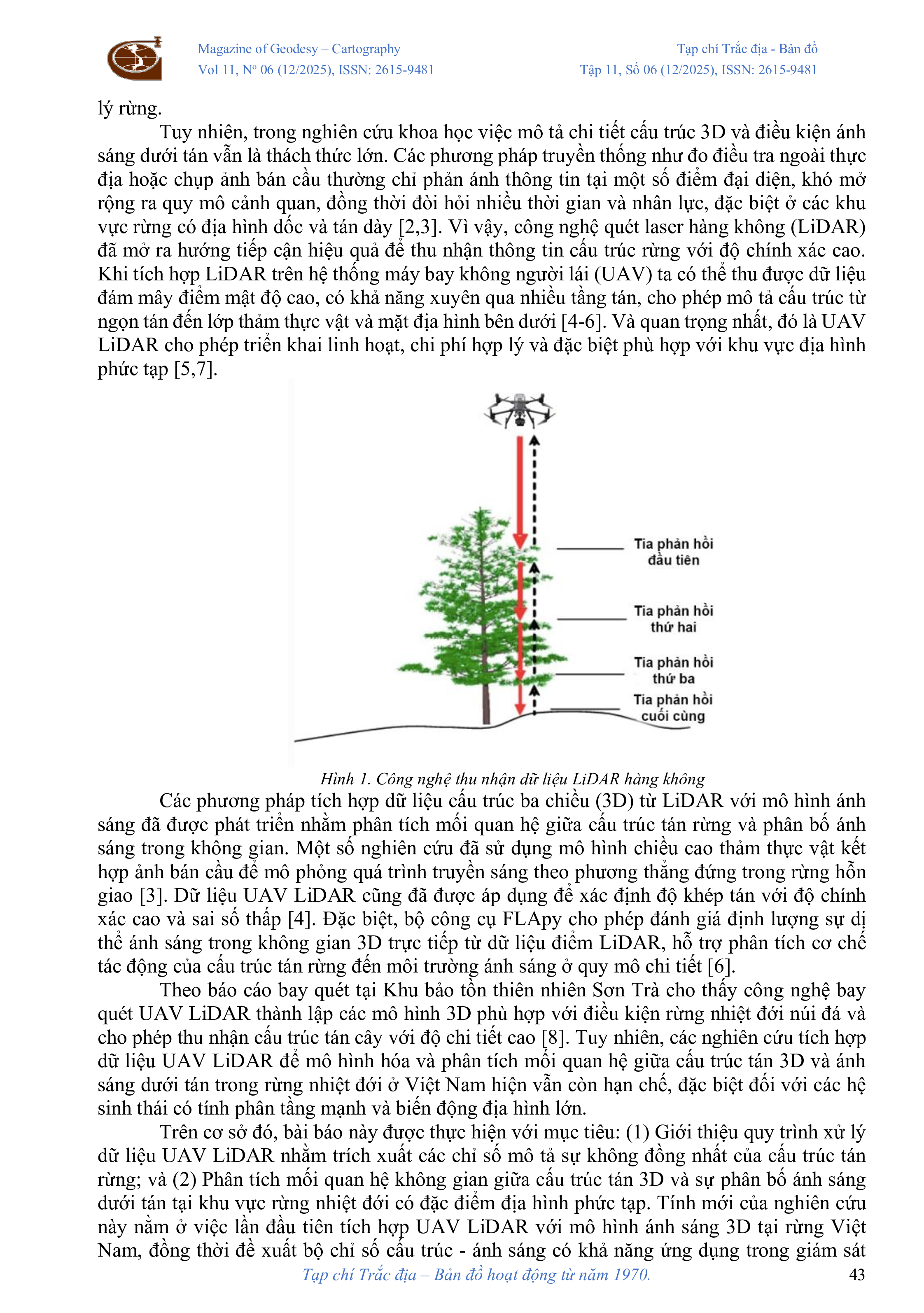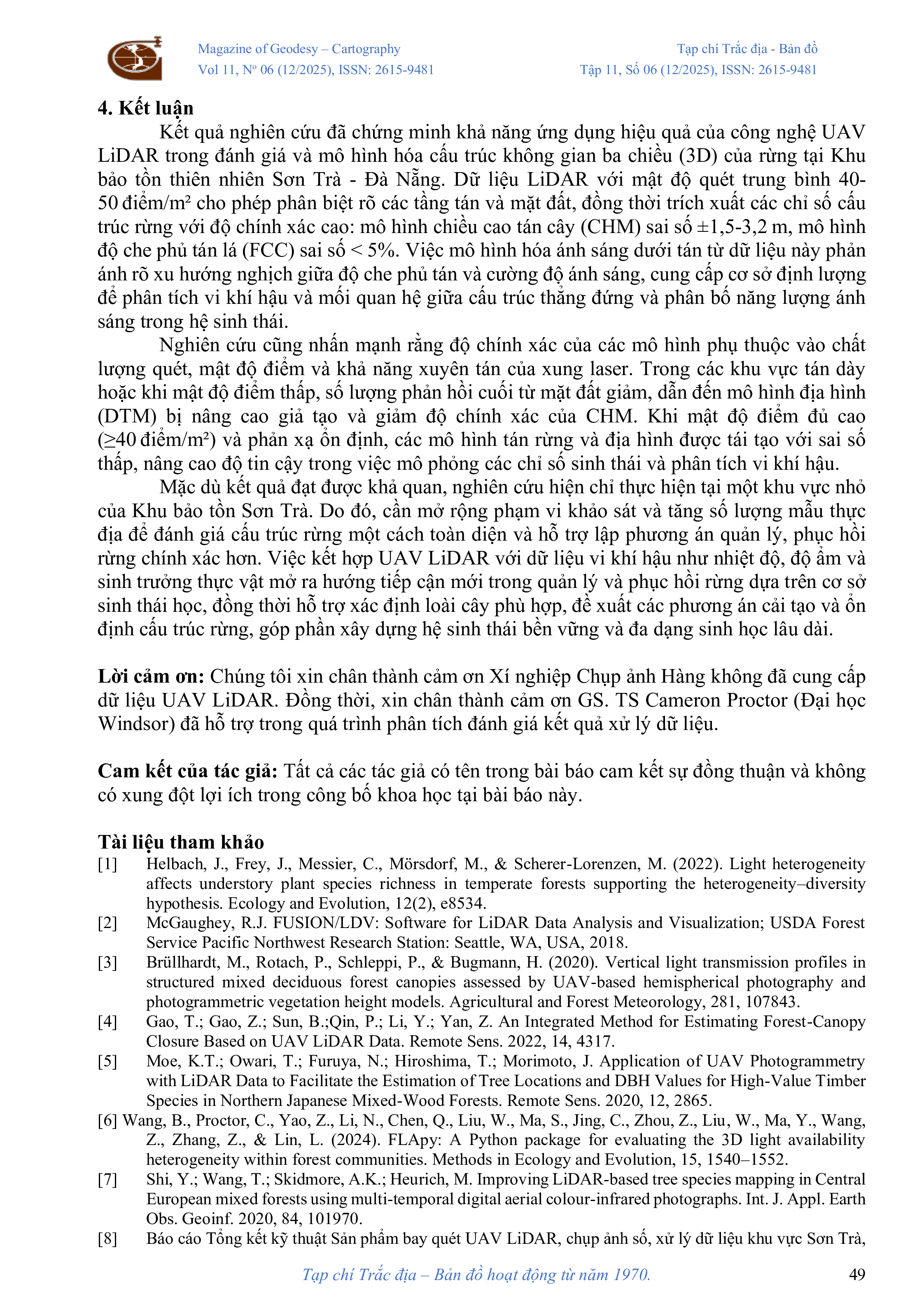 Ứng dụng dữ liệu LiDAR UAV đánh giá mối liên hệ giữa cấu trúc tán rừng và môi trường ánh sáng dưới tán rừng tại khu bảo tồn thiên nhiên Sơn Trà Đà Nẵng