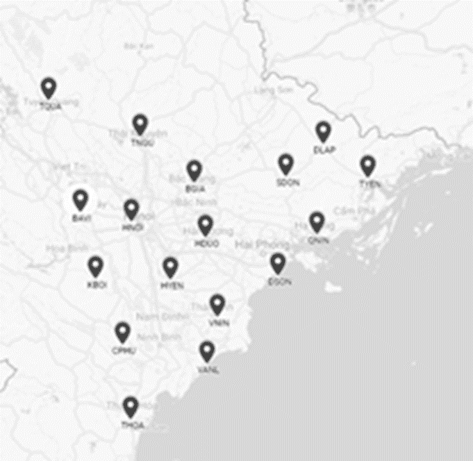 Sơ đồ vị trí 17 trạm CORS đã xây dựng tại Việt Nam