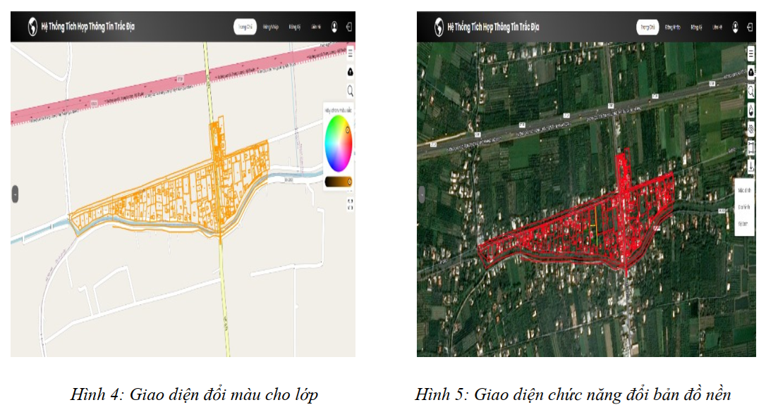 Người dùng có thể thay đổi màu sắc hiển thị của các lớp bản đồ theo ý muốn cá nhân, phù hợp với nhu cầu sử dụng nhằm tạo sự tương phản, phân biệt rõ ràng giữa các lớp dữ liệu (Hình 4).